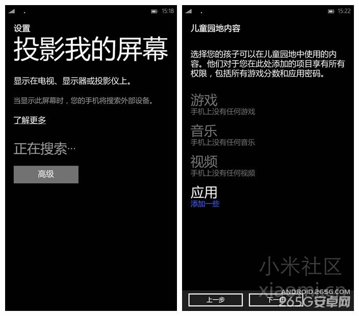 Win10 版小米4支持将手机屏幕直接投射到电视或者别的显示设备,在玩游戏或者使用手机内的Office时特别方便。Win10版小米4中的儿童园地类似于 MIUI中的访问限制,你可以下载一些热门游戏接着添加到儿童园地,当家里的小孩玩手机时可以打开这个功能,很贴心有木有!