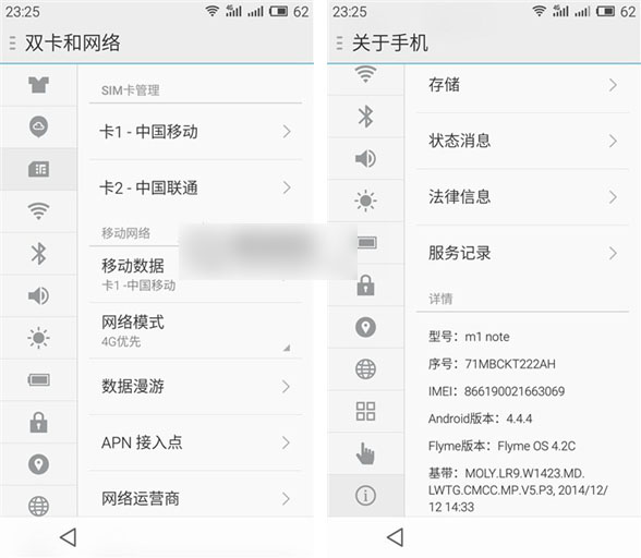 | 操作系统 | Flyme 4.1(基于安卓4.4.4) |