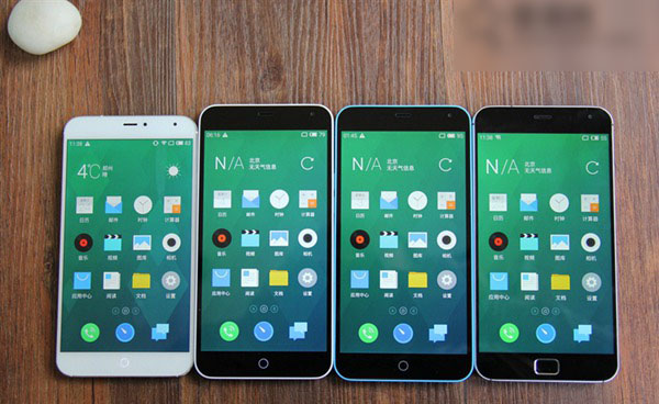 从左到右:MX4 Pro、魅蓝Note、魅蓝Note、MX4