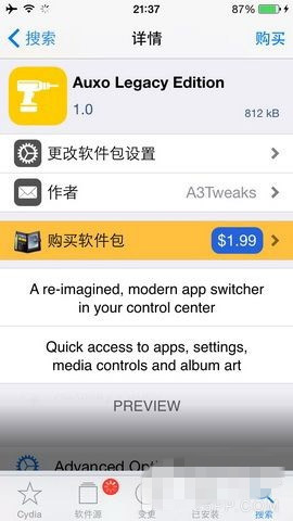 用户可以在设置当中选择将任务卡片向上和向下拖动动作所起到的作用,默认状态下用户长按卡片还可以完成一键关闭所有应用程序的操作。而对于相关页面的显示顺序和其中各选项的摆放位置用户也可以很方便的进行选择。插件对于已经使用了iOS8系统,却又不喜欢《Auxo 3》设计风格的用户来说还是非常实用的。目前插件已经在Cydia当中上架,售价为1.99美元。