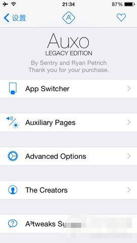 答:描述信息 Auxo Legacy Edition以Auxo第一代为设计原则经过重新打造,已兼容iOS7/8。 Auxo最初发布在2012年的iOS6上,当时多任务切换界面还是屏幕上拉式,Auxo针对该后台做了深度优化增强,融合了许多实用功能进去,而随着iOS7/8的发布,为了更符... >>详细