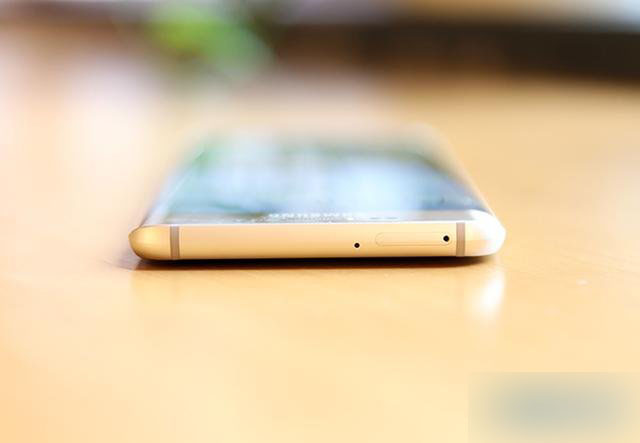 首先是一个很不容易被发现的改变,金属中框。尽管S6 edge+因为双曲面屏幕的关系,金属中框大体的造型和之前没有任何的区别,不过在顶部和底部的中框部分,三星将原有圆弧形的金属框做了一些修改,中间增加了一条棱,和之前S6的上下框设计一样。