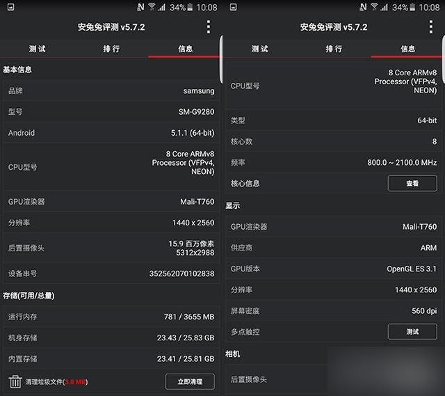 其他方面,Exynos 7420+UFS2.0存储对于手机整体的体验依旧很好,这一点在S6上已经得到了充分的体现。超过67000分的安兔兔成绩也足以证明这款手机硬件的强大。