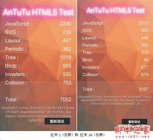安兔兔新版本中加入了测试HTML5的工具,对于现代智能手机来说这个测试项目同样重要,基本上也可以反映出手机硬件的强弱。联芯不如高通是肯定得,分数差距不小,正好是售价差额比例。