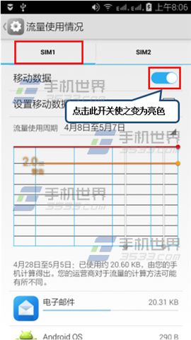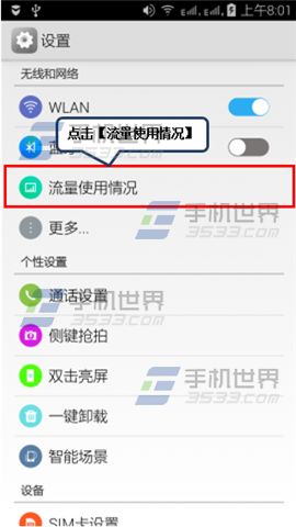 1)打开乐檬K3手机【设置】找到【流量使用情况】,开启【移动数据】。(如下图)