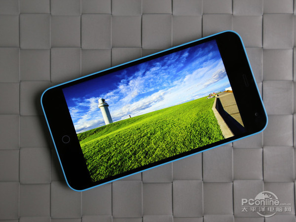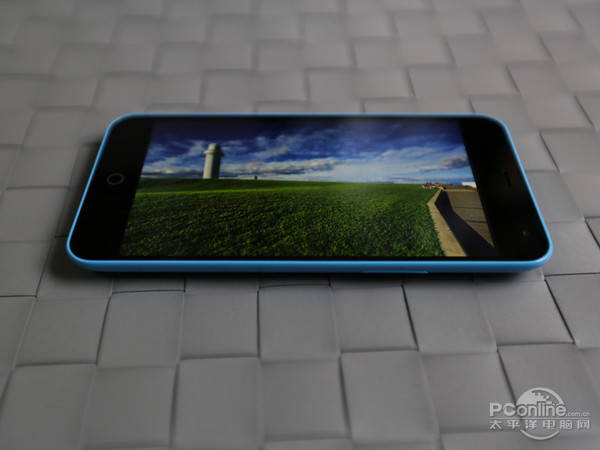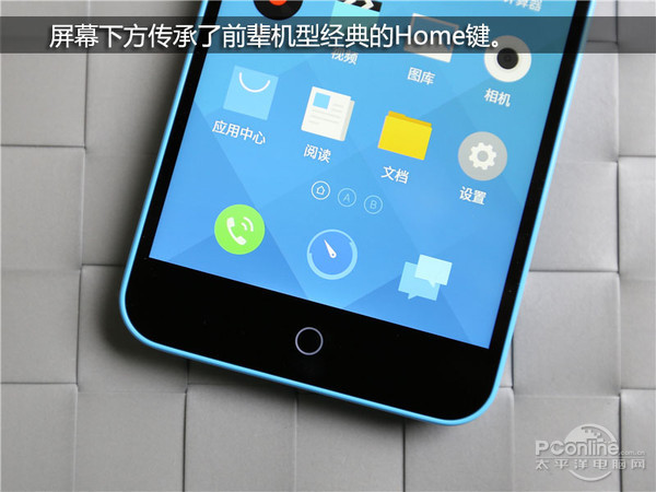 魅蓝YunOS版正面底部只设有一个魅族自家特色的Home键,显得非常简洁,上面还拥有按键背光灯。