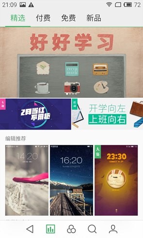 系统当中提供了多款主题可供用户下载,有分免费与收费两种,而即使是免费主题,也可以看到制作也是考究的。