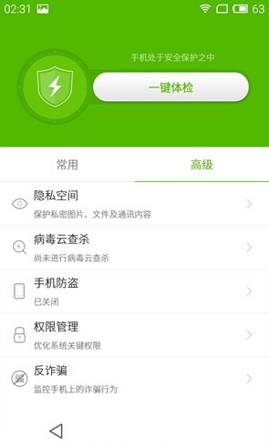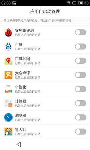 安全中心也是YunOS的服务之一,除了常规的杀毒功能外,它还能对支付安全提供保障。不少用户都感叹安卓手机在使用一段时间之后,运行速度变慢,其实这与后台自启有关,进入内存优化功能后,我们可以禁用应用程序的后台自启动功能,减少不必要应用占用CPU与RAM资源,除了可以提升运行速度外,还可以节约电能。