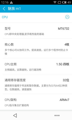 | CPU | 联发科MT6732 64四核1.5GHz |
