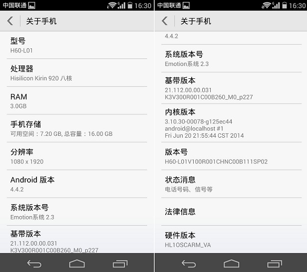 在评测之前,我们先来看看华为荣耀6配置参数详情,具体如下。
