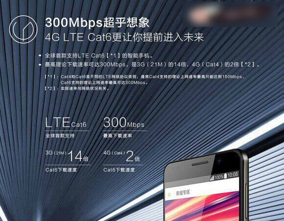 华为荣耀6采用了自己的LET基带新品,支持全球领先的Cat6网络,全面支持GSM/WCDMA/TDS/TD-LTE/FDD-LTE网络,网络支持范围非常广。