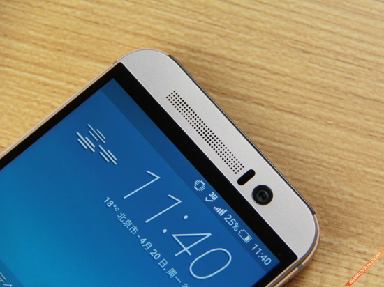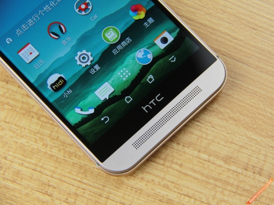 从最近几代HTC产品的外观来看,M9相比他们正面的改变不大,依旧是双BoomSound双前置扬声器+5英寸左右的机身设计。M9采用的是5.0英寸1080P显示屏,机身采用双色全金属设计,小编这里这台是金银汇配色版本。