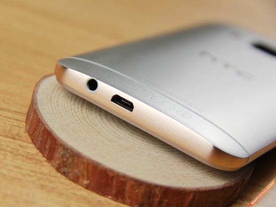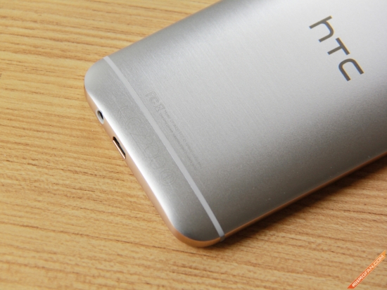 机身顶部的黑色区域是M9的红外线发射窗口,与前代产品M8一样,都可以通过内置的APP实现变身遥控器功能。底部没有什么好说的,USB以及3.5mm耳机插孔。