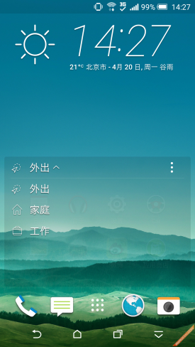 在系统方面,HTC One M9采用了基于Android 5.0定制的HTC Sense UI 7.0,最新的Sense UI 7.0加入了多个新功能,例如用户可以自己制作主题,可以编辑虚拟按键的位置,相机内置扫一扫等功能,这里先给各位展现几组系统截图,后面还会有特色功能的介绍。