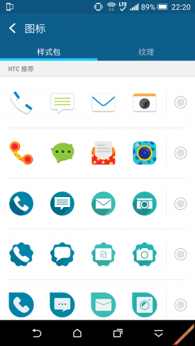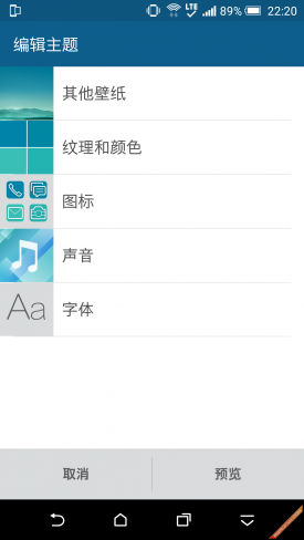 自定义主题:通过内置的HTC主题APP,进入到制作环节之后,自定义的内容非常多,用户可以设置自己喜欢的图片作为主题背景,之后调整图片的纹理、颜色,用户还可以选择自己喜欢的图片风格、声音以及字体样式等等。