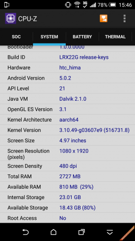 HTC每年的旗舰产品无疑都是搭载的高通最新的旗舰级别处理器,M9也不例外,搭载了一颗高通骁龙810八核64位处理器并辅以3GB大运行内存。纸面上看,配置足够抢眼,实际实力如何呢?通过专业的性能测试软件方能得到答案。