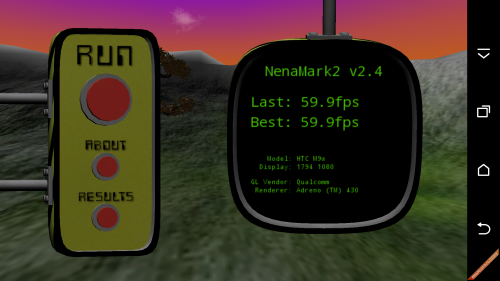 NenaMark2是一款面向Android智能手机的图形处理能力测试工具,通过一段视频Demo的播放测试手机图形处理单元的硬件加速能力。