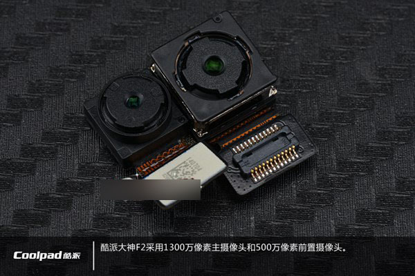 图为拆卸下来的酷派大神F2前后置摄像头,其前后分别为500万像素与1300万像素,也是目前的主流镜头规格。