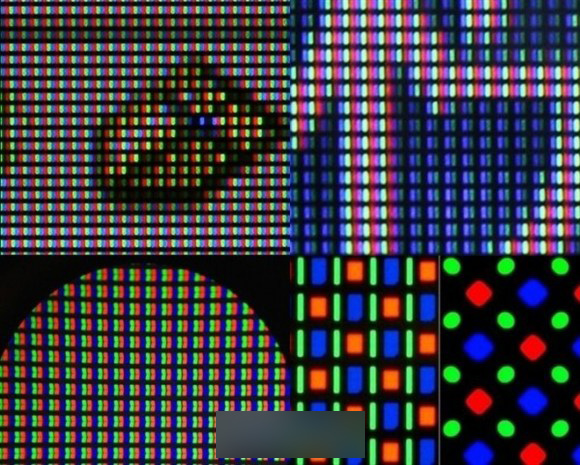 用放大镜、显微镜等设备观看屏幕可看到的红、绿、蓝三个次像素