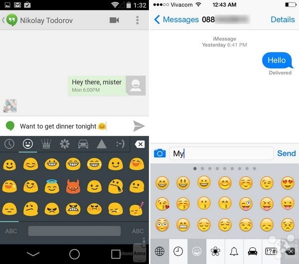 Android L和iOS 8短信界面对比