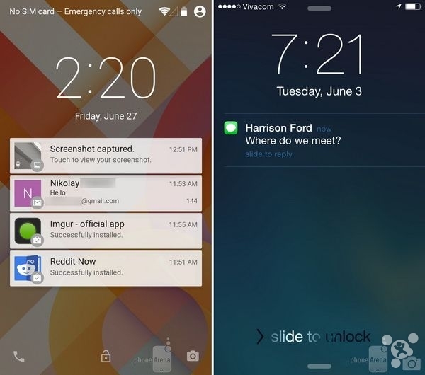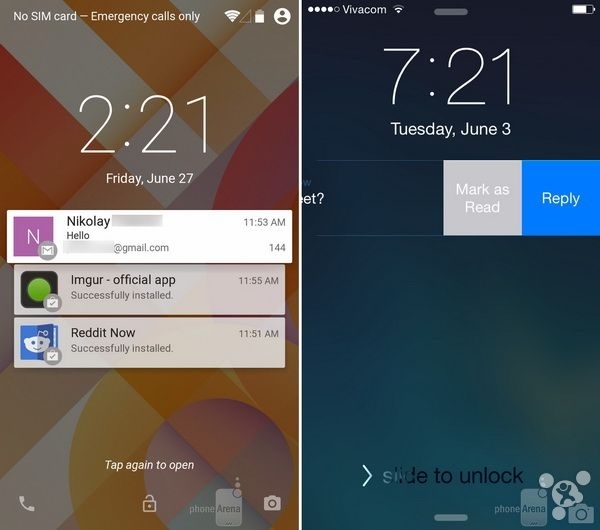 Android L和iOS 8锁屏界面对比