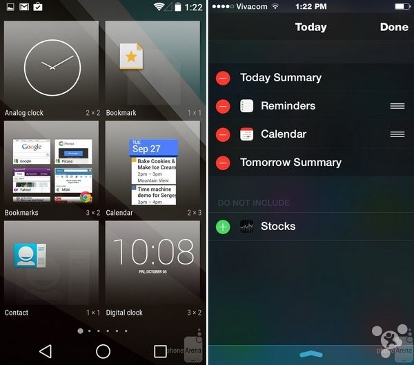 Android L锁屏将不再支持小工具,或许谷歌是为了让锁屏显得更加简洁,为电话快捷键让出更多空间。而在iOS 8中苹果则在通知中心面板添加对第三方小工具的支持,而且锁屏下下拉该面板即可访问小工具。