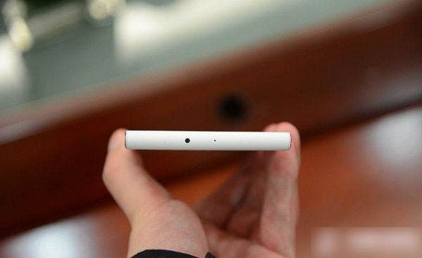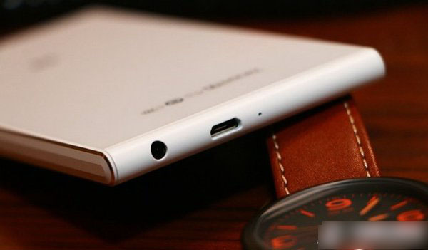 机身底部,有标准的3.5mm耳机接口、micro-USB接口以及通话听筒,3.5mm耳机插孔放置在机身底部的设计也值得点赞。左侧边框下方的扬声器开孔是个比较有特色的设定,设计上花了不少心思,保证了音质效果,提高了通话质量。