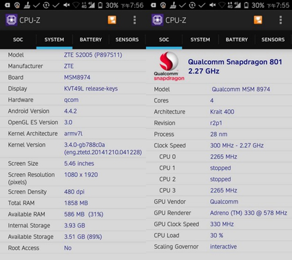 老规矩,在评测之前,我们先来看看中兴星星2号的配置参数情况。