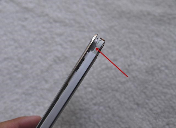 很顺利,就拆掉了顶部的小盖板,可以看见是用扣子来固定的,扣得相当的牢固,拆掉后,可以看见摄像头,闪光灯以天线等部件。