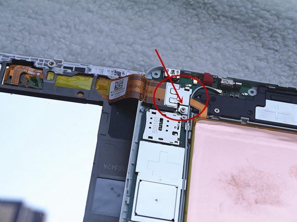 摄像头位置的排线也是通过金属固定架用螺丝来锁紧的,拆掉后置摄像头,就需要拆掉这个金属的固定架。