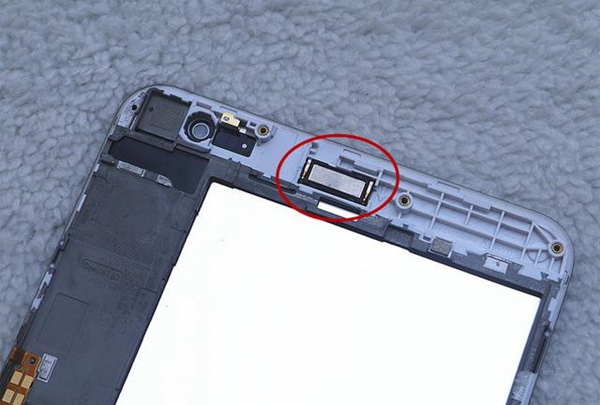 拆掉螺丝,就可以拆掉听筒位置,也是通过触片来和主板连接的。屏幕排线了,拆排线时需要小心,不要弄断了排线。