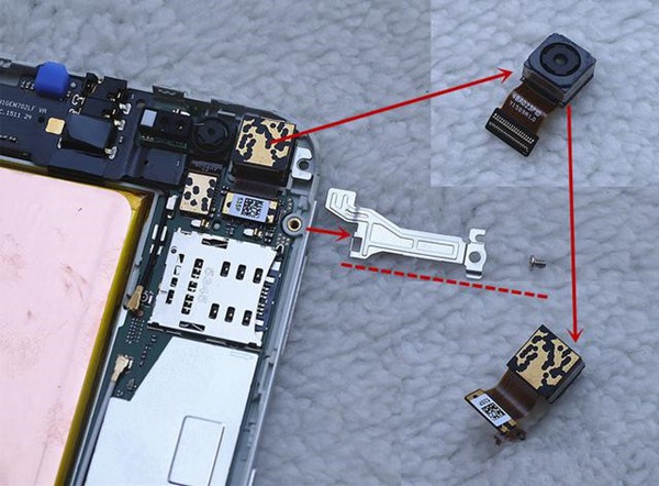 拆掉螺丝,取出摄像头排线,分离掉后置摄像头,后者摄像头是1300W像素的。