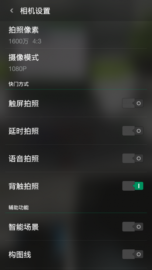 OPPO N3的拍照功能设置选项多达14个,其中在快门方式选项里的语音拍照与背触拍照比较有意思,语音拍照自然就是要标准的普通话了,而背触拍照则采用机身背部的指纹识别,在拍照像素选择里有1600万、1300万、1000万及300万像素四种选择,而其它功能方面大家都懂的,这里就不累述了。