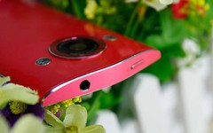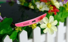 塑料背板触感不错,柔滑且不容易沾染指纹,无论玫红、白金还是薄荷绿的炫彩配色,都表明这是一款专为女性用户定制的产品,但至于我们拿到的这款枚红配色的美图M4是否真的能俘获女性用户的芳心,笔者就不太好评判了,女人的心思我是从来猜不明白,各位还是看图吧。