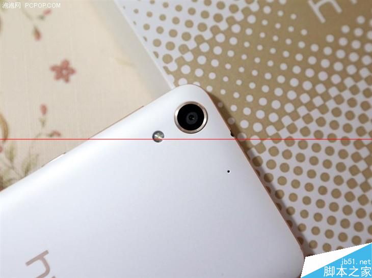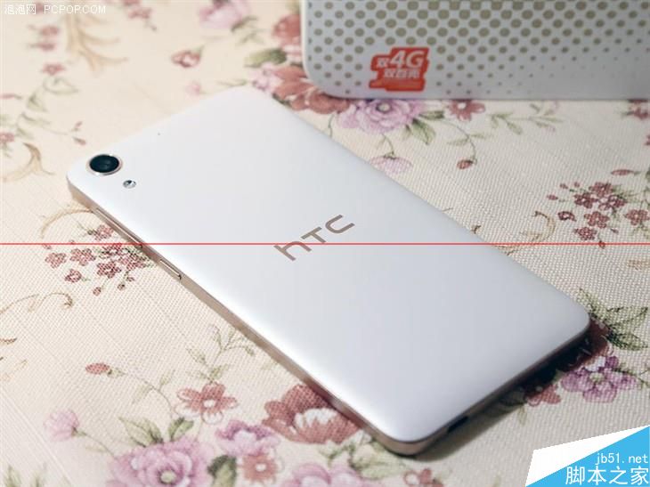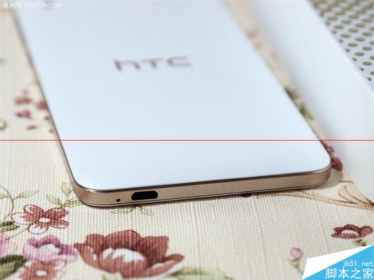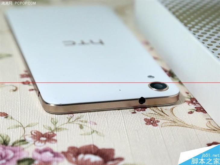 HTC Desire 728的背部非常整洁,采用类肤质感的材料以及白金双色设计(LOGO为金色),不仅防滑,触感也非常细腻。