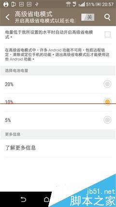 为了延长续航时间,HTC提供了省电模式和高级省电模式可选,但它的方式是通过关闭定位功能和数据连接等功能来达成,如果你需要长时间处于在线状态来接收即时消息,那么省电模式可能并不适合你。