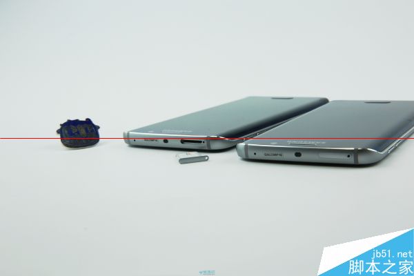 S6 Edge一口气扔掉了两个三星曾经很引以为豪的特性:换电池和插内存卡,所以边框上仅仅有一个NanoSIM卡槽的开口,卡托的材质很意外地没有完全使用金属——很多国产机的卡托都是全金属的,三星可能是为了良品率所以才没有使用吧?不过作为一台顶级的旗舰手机,我们还是希望从内到外用料不求其次,卡托在插好之后和边框之间契合度、平整度都相当令人满意,至少跟我们手上的iPhone 6和iPhone 6 Plus在同一等级上。
