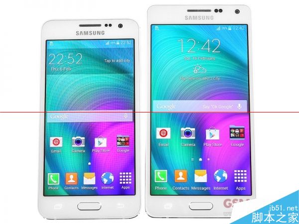 若是和Galaxy Alpha相比较,A3的机身更短更紧凑,并且A3的HOME按键也不具有指纹识别的功能,后背也没有心率感应器。