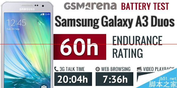 三星宣称A3内置的1900毫安时能够让A3坚持11小时的视频回放以及13小时的通话时长,而需要注意的是在以亮色调为主的网页浏览测试之中,AMOLED明显是不占任何优势的。