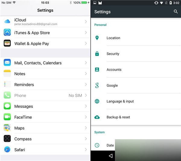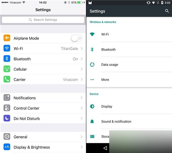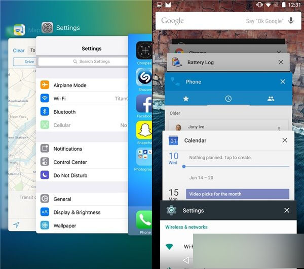 设置:即将到来的Android M在设置上的变化很多,它将使用全新的暗黑风格主题,改进的内存管理页面,菜单页面层次上的微调等。而iOS9也在设置顶部加入了一个搜索条,并带来了更好的通知、电池以及续航管理功能。