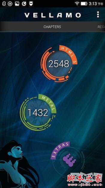 Vellamo是由Qualcomm(高通公司)开发的一个基准测试应用(类似于Neocore),它可以让你对手机浏览器的性能及稳定性进行测试,包括像Java脚本性能、渲染、联网和用户界面等。该工具的结果同样包括多个子项,但我们只取总成绩,分数越高则表明手机对浏览器的优化程度越高,网页浏览体验更好。而在该项测试中,联想VIBE X2再度展现了良好的处理器性能,HTML5测试2548分,Metal测试1432分,性能卓越。