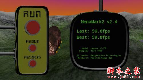 NenaMark 2.4是一款用于Android设备的硬件加速基准测试程序,通过演示一款实时渲染的画面来对手机的图形能力进行测试,包括反射、动态阴影、曲面参数、复杂光线模式等内容。在NenaMark 2.4测试中,联想VIBE X2以平均59.8FPS的成绩展现了优秀的3D处理能力。