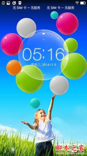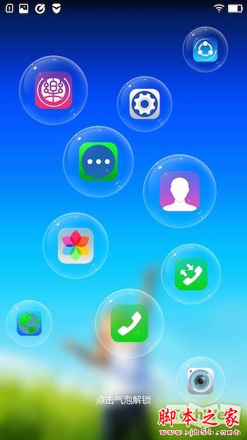 点亮屏幕,锁屏界面与先前的VIBE 2.0大不相同,采用了全新的Bubble(泡泡)设计,左右滑动即可进入桌面、右下角也提供了摄像机快速入口。有意思的是,长按中间的打泡泡3秒,会出现一个类似“打砖块”的小游戏,通过左右晃动手机控制底部小棍左右移动,游戏中击碎上面的泡泡时会有清脆的水滴声,游戏失败时小棍会“咔”的一声断掉,很适合无聊时来消磨时光。