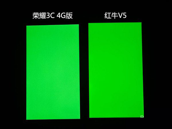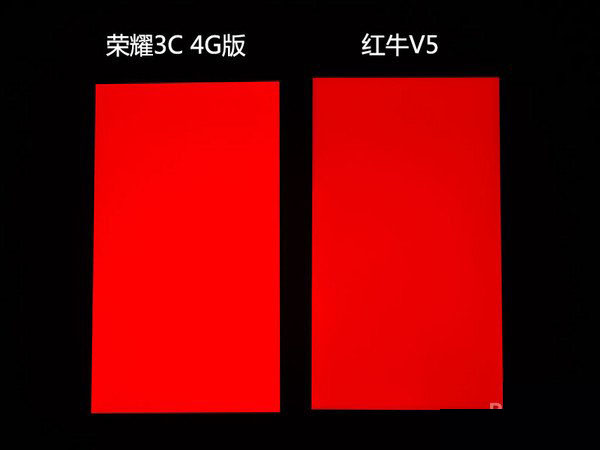 在三原色还原中,除了在绿色方面表现有差异之外,两款机型在红和蓝颜色还原中表现是几乎一致的,对标准颜色的还原程度都十分高,但可以看得出红牛V5的屏幕色彩饱和度要更加高一些。