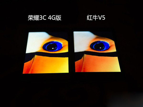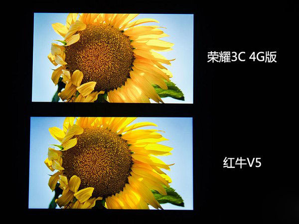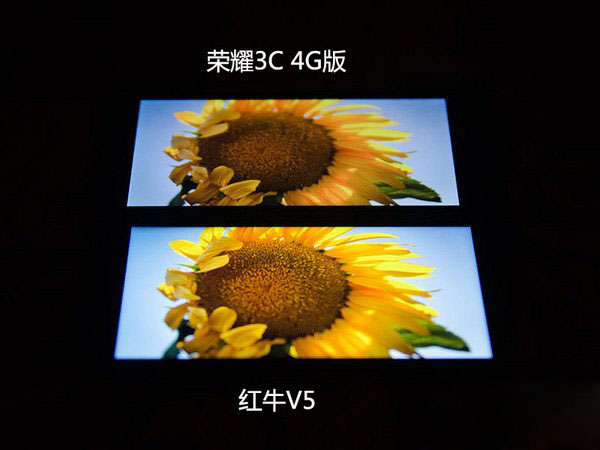先来看看两款机型的屏幕具体配置。荣耀3C 4G版搭载的是5英寸的720P屏幕,屏幕方面采用了现在流行的LTPS低温多晶硅技术;而红牛V5也是一款采用了5英寸720P屏幕的机型,而屏幕技术方面则搭载了夏普CGS显示技术。