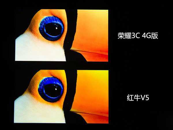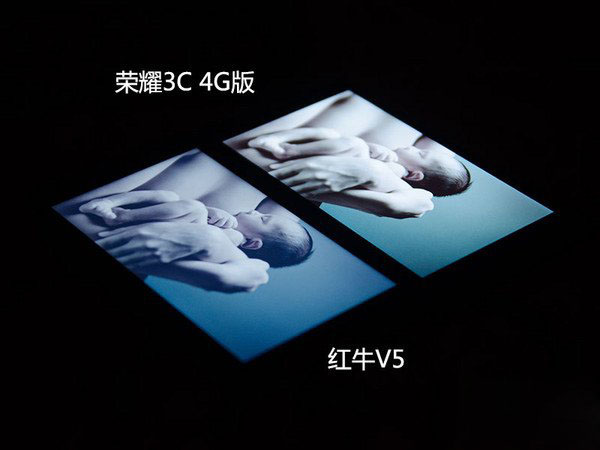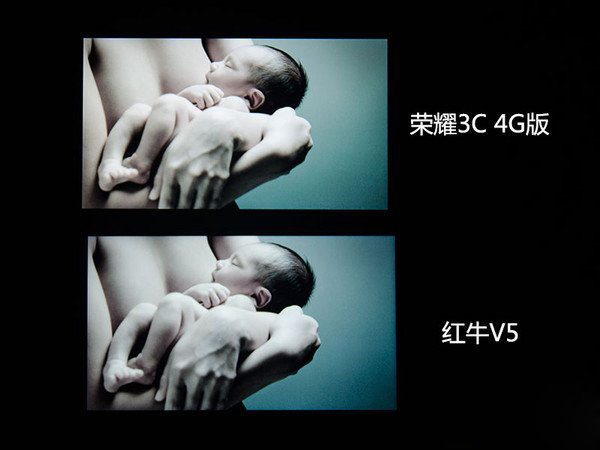 而在可视角度方面,两款机型表现也是比较一致,差别不大,只是有些角度观看的话,红牛V5的屏幕会出现一点偏色的情况(如抱着婴儿的图片),而荣耀3C 4G版就几乎是任何角度观看都是没有死角的。