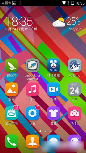 而在主界面方面,荣耀3C 4G版采用了流行的扁平化设计风格,界面给人了一种色彩斑斓的感觉;而红牛V5就继续沿用了拟物化的图标设计,但是比起以往旧版半成品UI的图标设计要完善很多了。