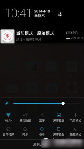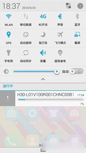 在通知栏方面,两者的也是内置了快捷工具栏,但细心用起来的话,会发现红牛V5的是更加好用的,为什么呢?荣耀3C 4G版的快捷工具设置在了屏幕上方,操作起来需要移动手指,而红牛V5的则是设置在了下方,手指直接就可以操作了,这些微小的地方就可以很容易看出厂商在定制UI时的人性化程度了。