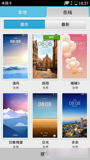 在系统美化方面,两者都是支持在线更换主题。但可以看到荣耀3C 4G版搭载的Emotion UI资源更加丰富,毕竟系统发展时间长一些,也是比较完善了;而红牛V5的nubia 2.0 UI在主题方面的资源是比较匮乏的,相比起华为的Emotion UI,红牛V5的nubia UI还是显得稚嫩了一些。