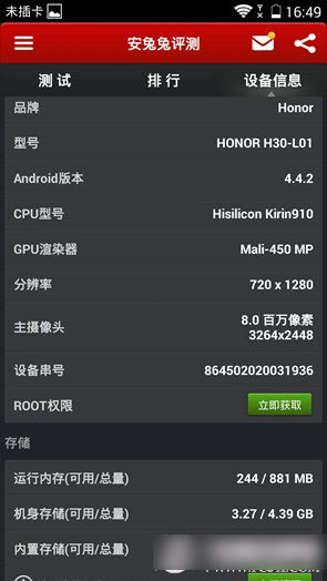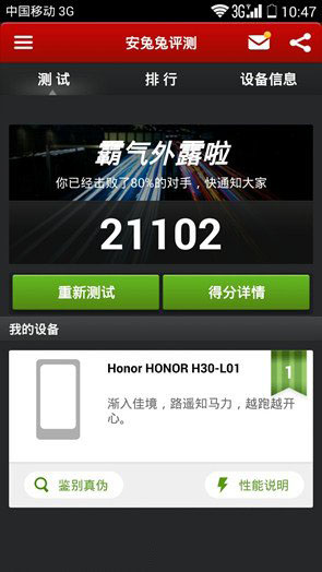 在性能方面,荣耀3C 4G版搭载的是华为自家最新的海思麒麟Kirin910四核1.6GHz处理器,红牛V5搭载的是高通骁龙MSM8926四核1.2GHz。这次评测室拿到的都是标准版本,因此均是搭载了1GB的运行内存,下面来看看两款机型的性能表现吧: